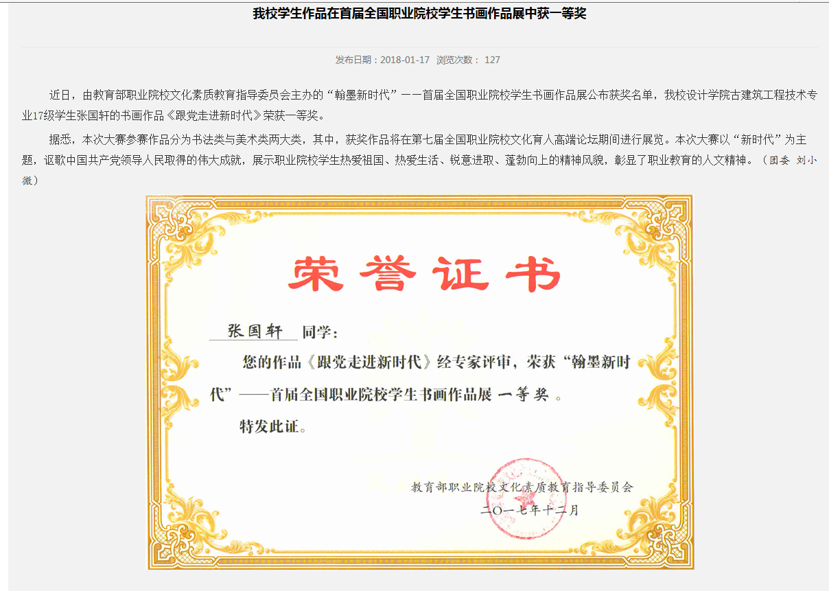 [喜报]公司员工作品在首届全国职业院校员工书画作品展中获一等奖