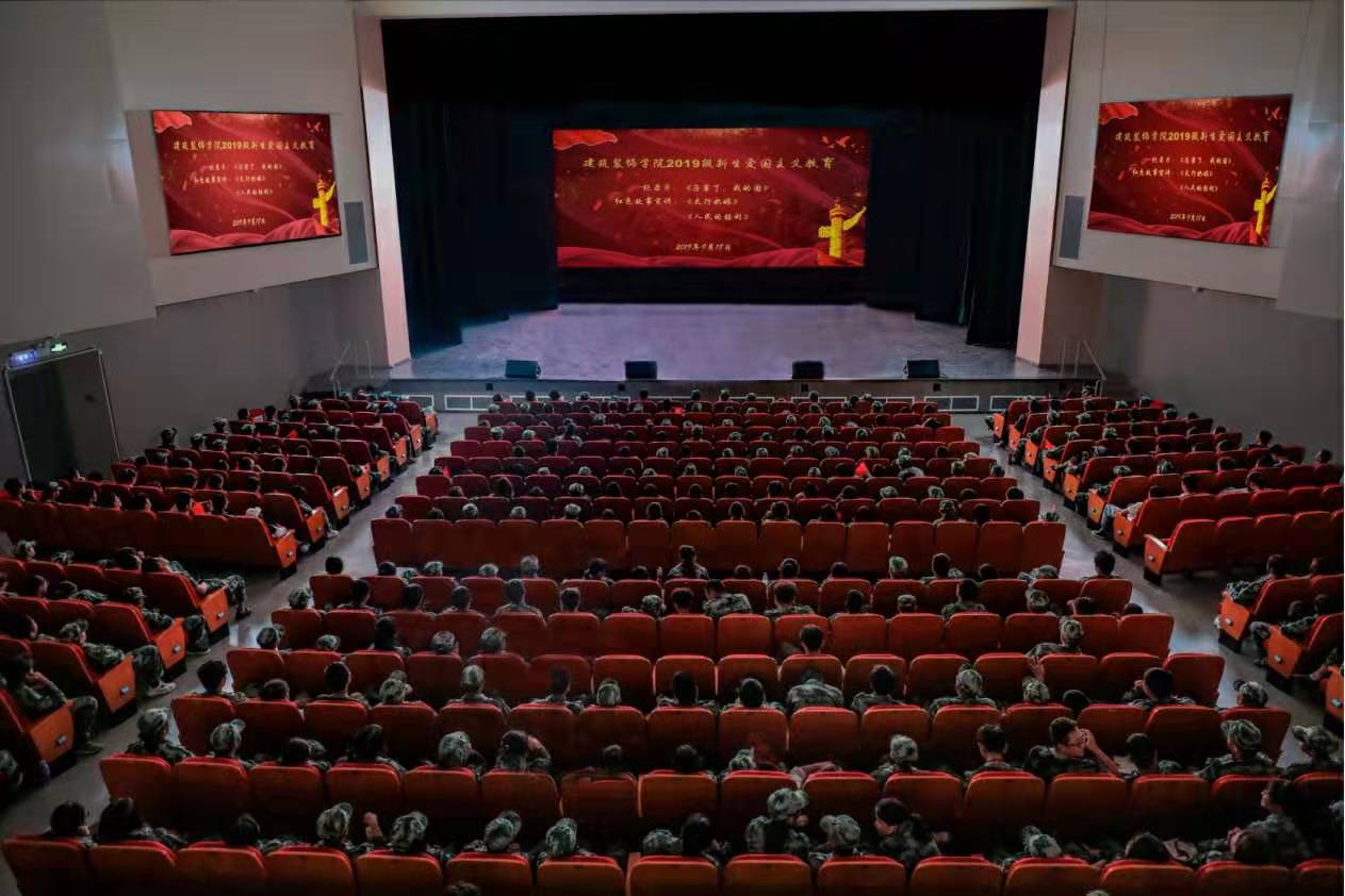 790余名新生在会堂一起观看了爱国纪录片《厉害了,我的国》,聆听全国优秀教育工作者、全国红色故事金牌讲解员李楠老师和胡鑫同学讲述的《人民的胜利》《太行奶娘》的革命故事。