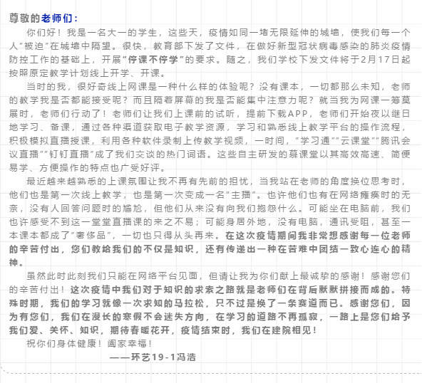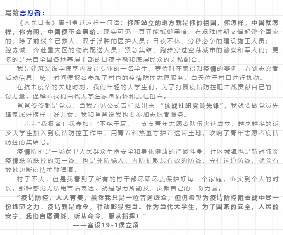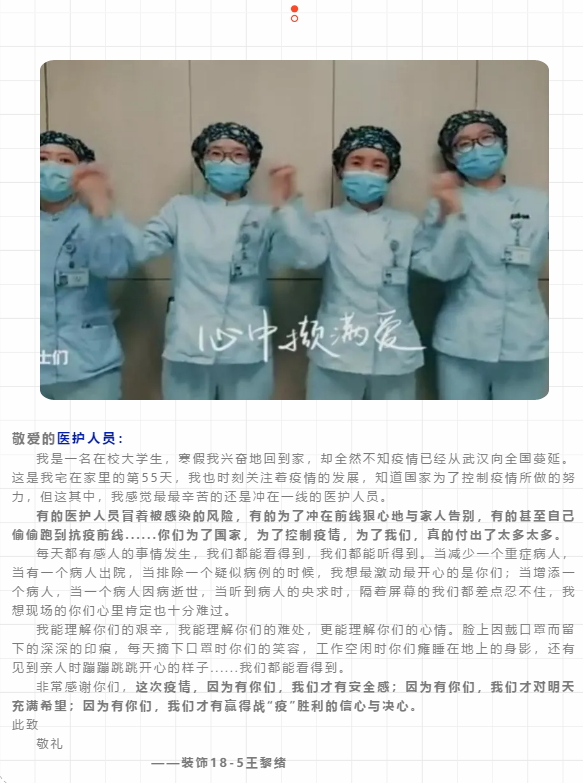 公司学子写给战“疫”逆行者的“一封信”