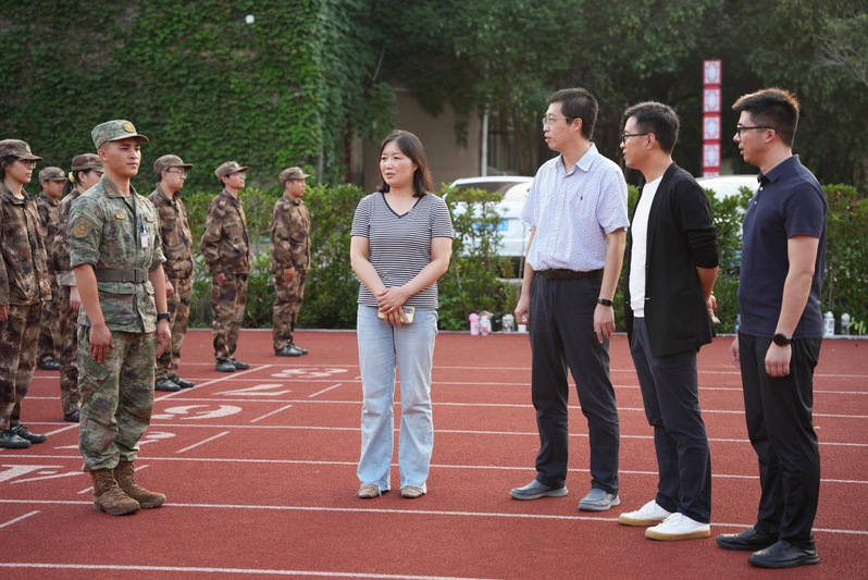 9月1日下午,公司领导班子及全体辅导员老师来到东操场看望慰问了2021级军训承训教官和参训员工。